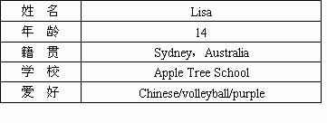 假如你在www.yyxxfd.com.cn(英语学习辅导网站)结识了一位叫Lisa的网友,请根据她传给你的有关信息,向你的同学做简要介绍。