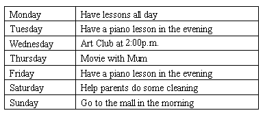 假设你是Amy,下表是你下周的活动安排。今天你收到了两个分别来自Robot和Linda的邀请。 Robot希望你能参加他周三下午的集会,Linda 问你星期日能否和她一起去购物。请就你的情况做出回复。