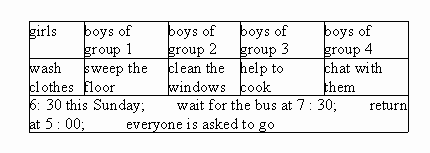 假如你是班长,请就上面表格中提示的内容向全班作一个口头通知,安排去敬老院(Nursing Home) 进行敬老爱老活动的有关事宜.