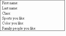 阅读下面的卡片,写出有关自己的所有信息, 也可以写出喜欢的原因。