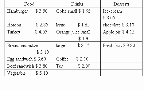 (2)Jeff has ordered a hamburger, a large orange juice and two apple pies. How much will he have to pay?