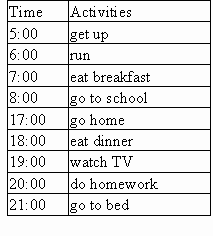 仿照时间表后的例子和你的同学进行问答练习,然后结合生活对同学进行调查。