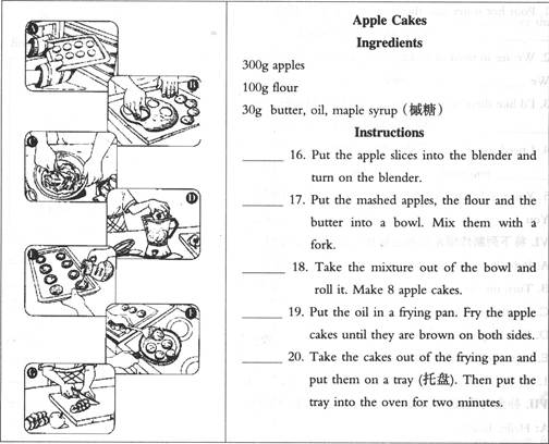 阅读苹果饼的制作过程,然后把图片与制作程序配伍(有2幅多余图片)。![]()