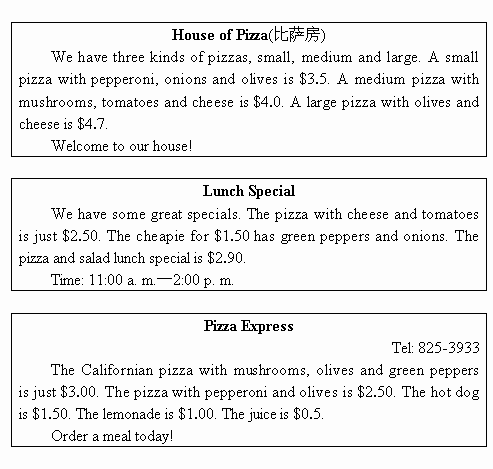 (5)In the House of Pizza, you can buy ________.