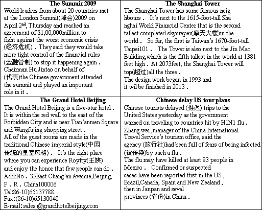 | C.the highest bar in the world | D.The Grand Hyatt Hotel on Nanjing Road |