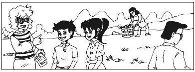 你想知道下面这些人的名字吗?请根据图画提示完成下面各句,并在他们的下面标出他们的名字。