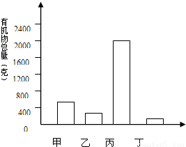 如果生态系统有4种生物,并构成1条食物链,在某一段时间分别测得这4种生物(甲、乙、丙、丁)所含有机物的总量如右图所示,在一段时间内,如果乙的数量增加,则会引起( )
