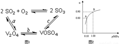 (2)催化氧化所使用的催化剂钒触媒(V2O5)能加快二氧化硫氧化速率,此过程中产生了一连串的中间体(如图1)![]()