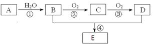 (14分)已知A的产量通常用来衡量一个国家的石油化工水平,现以A为主要原料合成一种具有果香味的物质E,其合成路线如下图所示。![]()