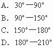C.150°~180° D.180°~210°