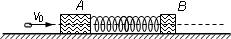 如图所示在光滑水平面上有两个小木块A和B,其质量mA=1 kg,mB=4 kg,它们中间用一根轻弹簧相连.一颗水平飞行的子弹质量为m=50 g,v0=500 m/s的速度在极短的时间内射穿两木块,一直射穿A木块后子弹的速度变为原来的3/5,且子弹穿A木块损失的动能是射穿B木块损失的动能的2倍.求: