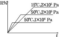 2 N (g)+2L,如图所示R%是R的转化率,t是时间,下列关于该反应的分析正确的是( )![]()