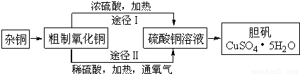(3)通过途径II实现用粗制氧化铜制取胆矾,必须进行的实验操作步骤:酸溶、加热通氧气、过滤、