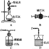 (4)从下列装置中选取必要的装置制取(NH4)2SO4溶液,连接的顺序(用接口序号字母表示)是:a接 ; 接 。