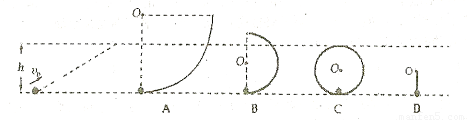 如图所示,小球以初速度为v0从光滑斜面底部向上滑,恰能到达最大高度为h的斜面顶部。右图中A是内轨半径大于h的光滑轨道、B是内轨半径小于h的光滑轨道、C是内轨半径等于h光滑轨道、D是长为