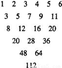 14、给定正整数n(n≥2)按右图方式构成倒立三角形数表,第一行依次写上数l,2,3,…,n,在第一行的每相邻两个数正中间的下方写上这两个数之和,得到第二行的数(比上一行少一个数),依次类推,最后一行(第n行)只有一个数,例如n=6时数表如图所,则当n=2009时最后一行的数是
