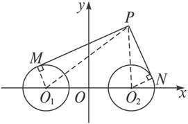 如图,圆O1与圆O2的半径都是1,O1O2=4,过动点P分别作圆O1、圆O2的切线PM、PN(M、N分别为切点),使得试建立适当的坐标系,并求动点 P的轨迹方程.