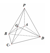 如图,在四棱锥P-ABCD中,PA⊥面ABCD,AB=BC=2,AD=CD=,PA=,∠ABC=120°,G为线段PC的中点.![]()