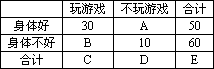 某同学对一些人进行了玩游戏与身体健康的关系的调查,在填写列联表时丢失了几个数据,得到残表如下: