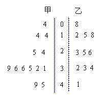 右图表示甲、乙两个检查组每天检查到的食品品种数的茎叶图,