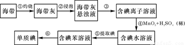 (14分)海带中含有丰富的碘。为了从海带中提取碘,某研究性学习小组设计并进行了以下实验: