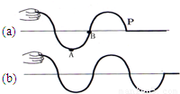 如图(a) 所示.用手拿着绳子的一端上下摆动.保持摆动幅度相等. 就会看到一列凹凸相间的波向绳子的另一端传去.设在t时刻波传到P点.则下列判断错误的是 [ ] A.在此时刻质点A加速度向上 B.在此时刻质点B速度向下 C.再过T/2时间.绳上波形如图(b) 所示 D.再过T/2时间.质点A向右移过/ 2的距离 查看更多