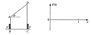 如图所示,质量足够大,截面是直角的物块静置在光滑水平地面上,其两个侧面恰好与两个固定在地面上的压力传感器X和Y相接触。图中AB高H=0.3m,AD长L=0.5m斜面倾角