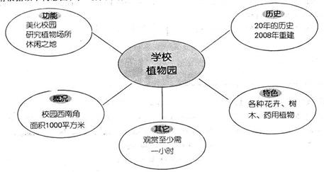 写作内容 :请根据以下构思图,写一份关于你校植物园的英语简介。