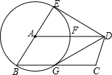 精英家教网如图,平行四边形ABCD中,以A为圆心,AB为半径的圆交AD于F,交BC于G,延长BA交圆于E.