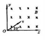如图所示,在平面直角坐标系xOy的第一象限内,有垂直纸面向里的匀强磁场,磁感应强度为B.一对正、负电子从O点沿纸面以相同速度υ射入磁场中,速度方向与磁场边界Ox成30°角,则正、负电子在磁场中运动时间之比为多少?粒子离开磁场时的坐标为多少?