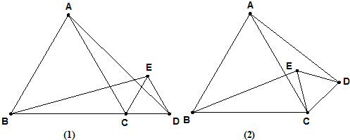 在图1中,若等边三角形CDE与等边三角形ABC均在直线BC的同一侧,