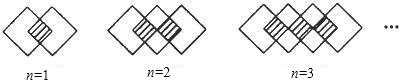 18、如图,将一个正方形,第1次向右平移一下,平移的距离等于对角线长的一半,即其中一个正方形的顶点与另一个正方形的中心重合,并把重叠部分涂上颜色;第2次向右平移连续平移两次,每次平移的距离与第一次平移的距离相同,并且每平移一次把重叠部分涂上颜色,…,则第n次平移后所得到的图案中正方形的个数是