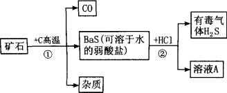 实验设计:自然界矿物中一种重晶石矿的主要成分是BaSO4,它不溶于任何酸、碱和水,纯净的BaSO4可供医疗等方面应用。某课外活动小组同学用重晶石矿和焦炭为原料制取纯净BaSO4的(设矿物中杂质不与焦炭反应,也不溶于水)部分流程如下: