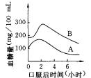 (1)两人血糖浓度变化如下图,其中表示糖尿病患者的曲线是________。