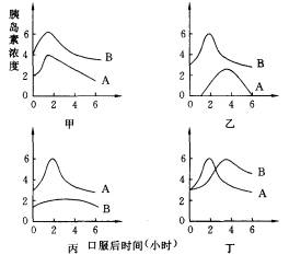 (2)下列甲~丁4种曲线图中能正确反映二人血液中胰岛素浓度变化的是________。