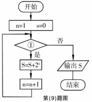 阅读如图所示的程序框图,若输出的S是126,则①应为 ( )