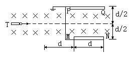 初速度为零的离子经过电势差为U的电场加速后,从离子枪T中水平射出,与离子枪相距d处有两平行金属板MN和PQ,整个空间存在一磁感强度为B的匀强磁场如图10-28所示。不考虑重力的作用,荷质比q/m(q,m分别为离子的带电量与质量),应在什么范围内,离子才能打到金属板上?
