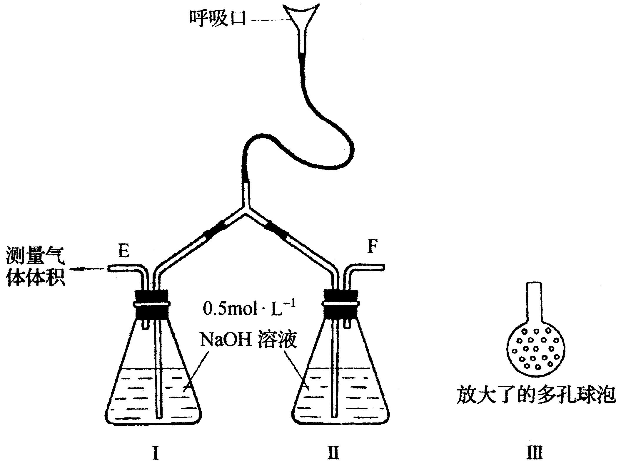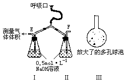 为了测定人体新陈代谢呼出气体中CO2的体积分数,某学生课外小组设计了如下图的实验装置.实验中用过量NaOH溶液吸收气体中的CO2,准确测量瓶Ⅰ中溶液吸收CO2后的增重及剩余气体的体积(实验时只用嘴吸气和呼气),请填空: