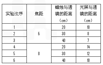 ①分别采用不通的焦距做实验,实验得到的记录如下表: