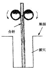 如图所示是建筑工地上常用的一种“深穴打夯机”,电动机带动两个滚轮匀速转动将夯杆从深坑提上来,当夯杆底端刚到达坑口时,两个滚轮彼此分开,将夯杆释放,夯杆在自身重力作用下,落回深坑,夯实坑底,夯杆不反弹,设夯杆与坑底的接触时间为t=1.0s,然后两个滚轮再次压紧,将夯杆提上来,如此周而复始。已知两个滚轮边缘的线速度恒为v=4.0m/s,每个滚轮对夯杆的正压力均为F=2.0×104N,滚轮与夯杆间的动摩擦因数