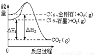 如图所示,△H1=-393.5 kJ•mol-1,△H2=-395.4 kJ•mol-1,下列说法或表示式正确的是