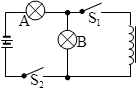 如图所示,A、B是两盏完全相同的白炽灯,L是电阻不计的电感线圈,如果断开电键S1,闭合S2,A、B两灯都能同样发光.如果最初S1是闭合的,S2是断开的.那么,可能出现的情况是![]()