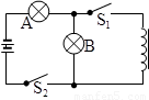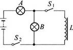 如图所示,A、B是两盏完全相同的白炽灯,L是电阻不计的电感线 圈, 如果断开电键S1,闭合S2,A、B两灯都能同样发光.如果最初S1是闭合的.S2是断开的.那幺不可能出现的情况是( ).