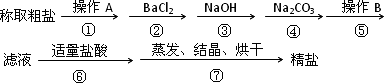 (1)第①步中,操作A是________,第⑤步中,操作B________;
