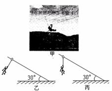 如图甲所示,高空滑索是一项勇敢者的游戏.如果一个质量为50kg的人用轻绳通过轻质滑环悬吊在倾角为θ=30°的足够长的钢索上运动,在下滑过程中可能会出现如图乙和如图丙(轻绳处于竖直方向)所示的两种情形,若取g=10m/s2,则下列说法中错误的是(  )