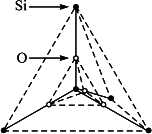 每个Si原子通过O原子与周围的4个Si原子连接着,形成1个大的正四面体(虚线示型):