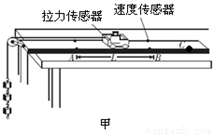 (12分)某实验小组利用拉力传感器和速度传感器探究功和动能变化的关系,如图甲所示,他们将拉力传感器固定在小车上,用不可伸长的细线将其通过一个定滑轮与钩码相连,用拉力传感器记录小车受到拉力的大小.在水平桌面上相距50.0cm的A、B两点各安装一个速度传感器,记录小车通过A、B时的速度大小.小车中可以放置砝码.![]()