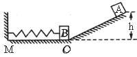 的小物块A从坡道顶端由静止滑下,进入水平面上的滑道时无机械能损失,为使A制动,将轻弹簧的一端固定在水平滑道延长线M处的墙上,另一端与质量为