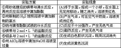 | ①用砂纸擦后的镁带与沸水反应,再向反应后溶液中滴加酚酞 | (A)浮于水面,熔成一个小球,在水面上无定向移动,随之消失,溶液变红色 |