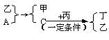 有A、B、C、D四种单质。在一定条件下,B可以分别和A、C、D化合,生成化合物甲、乙、丙,C和D化合生成化合物丁。已知甲、乙、丙的每个分子中分别都含有10个电子,并且甲、乙、丙、丁有下图关系: